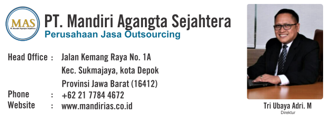 PT. Mandiri Agangta Sejahtera (MAS) adalah perusahaaan Outsourcing yang didirikan di Jakarta dan telah memiliki semua kelengkapan legalitas.